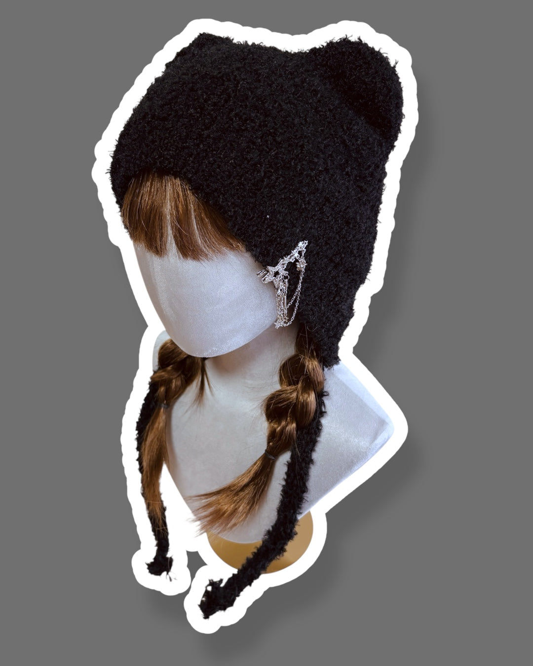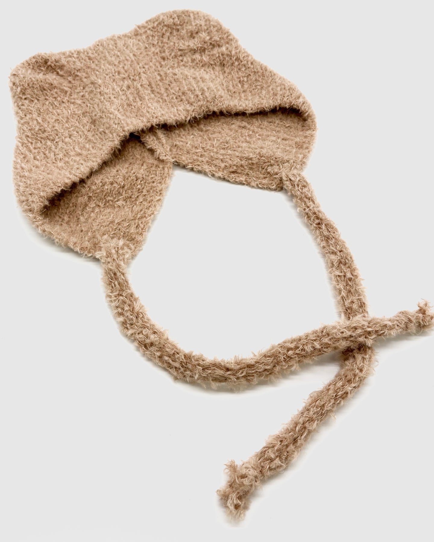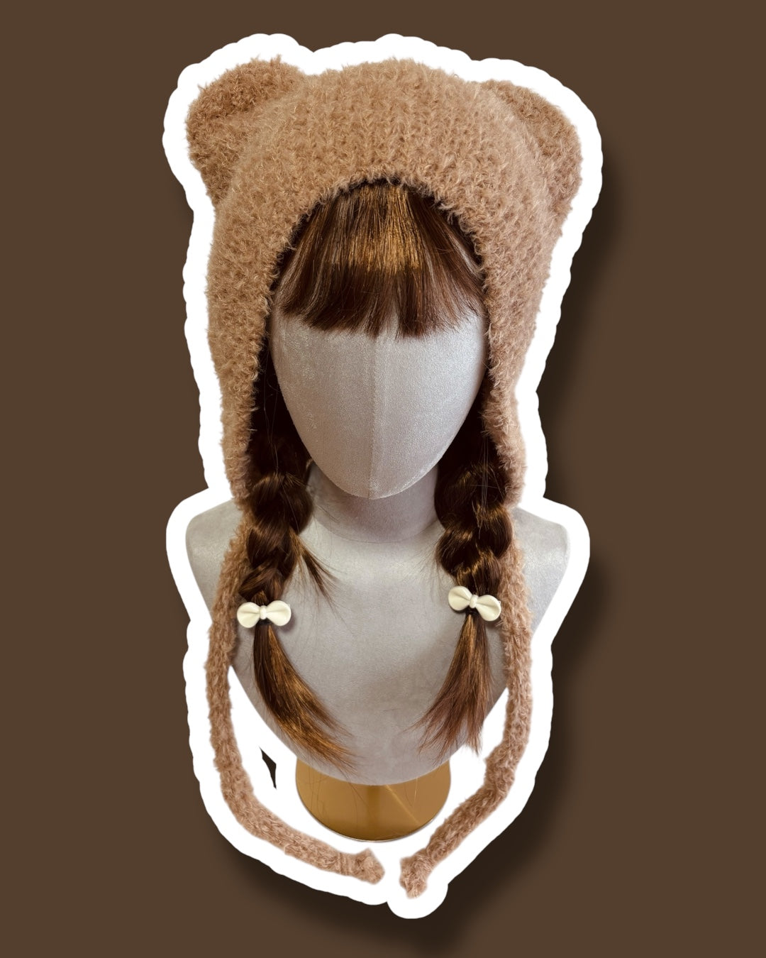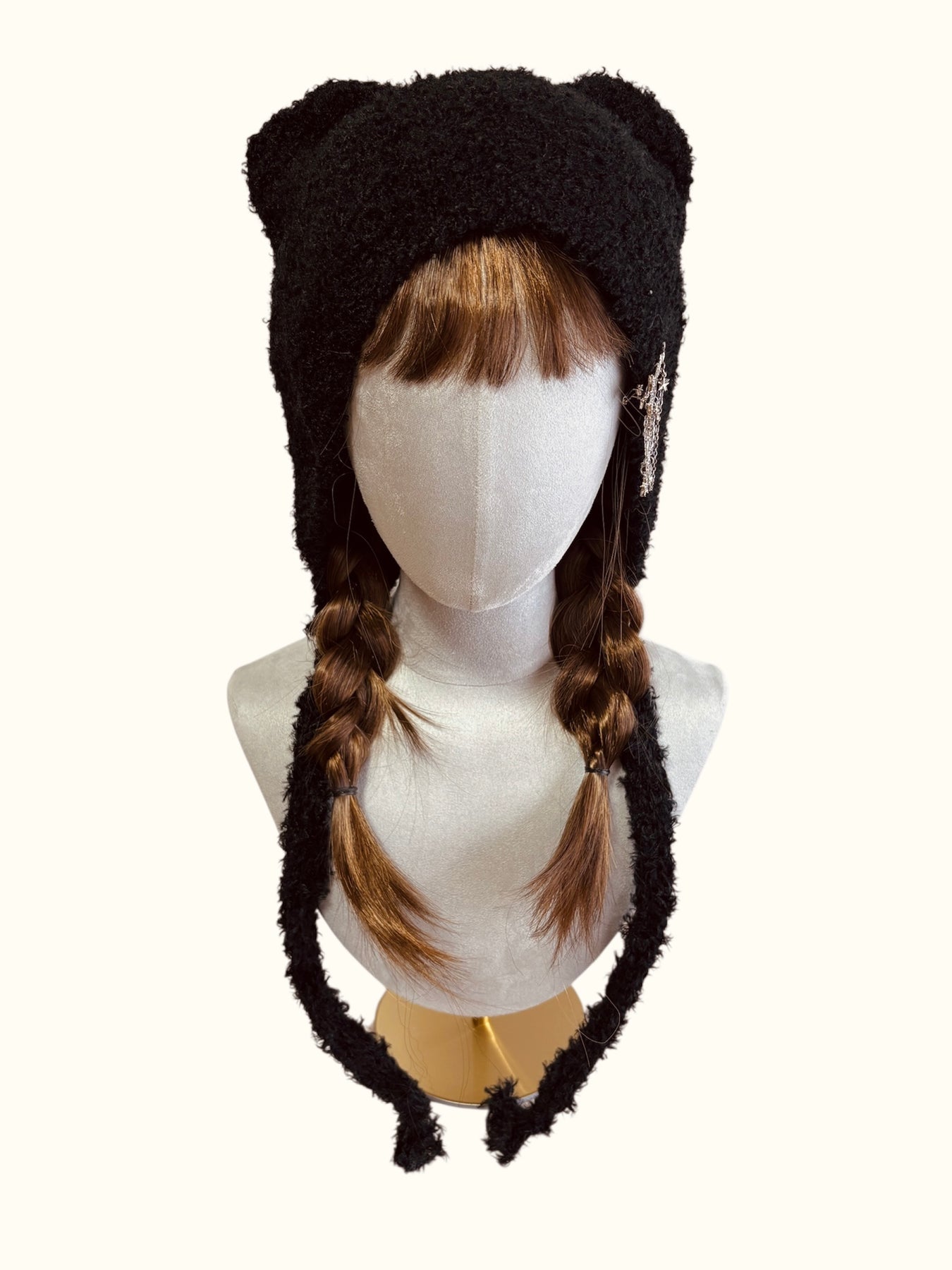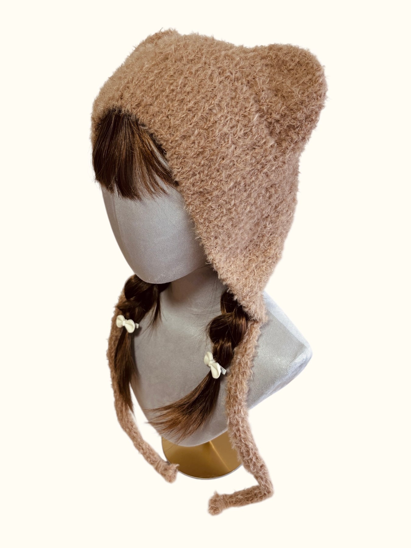 耳付きのワンポイントながらシンプルな色合いで合わせやすいアイテムです