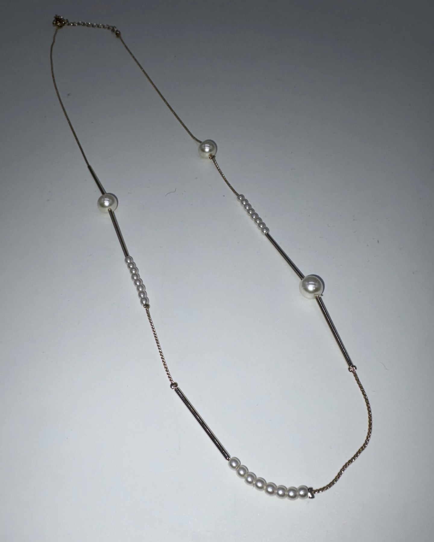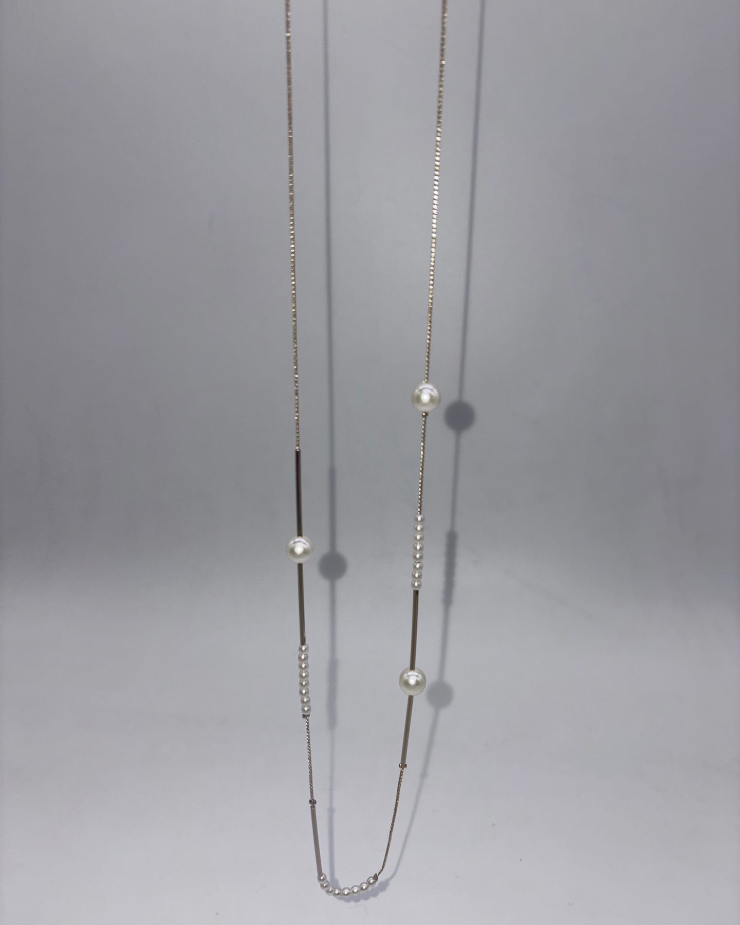 非対称なデザインのロングネックレスです