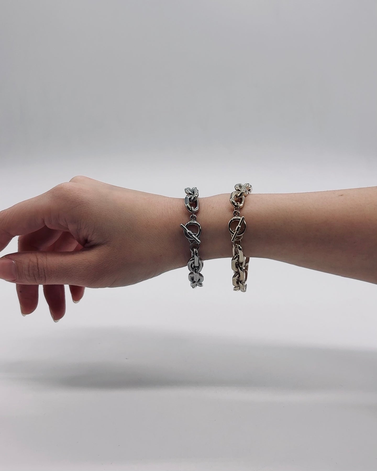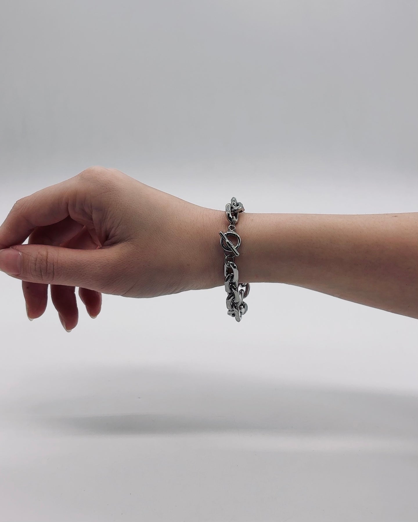 シンプルなチェーンブレスレットで腕もとに程よいアクセントを加えてくれるアイテムです