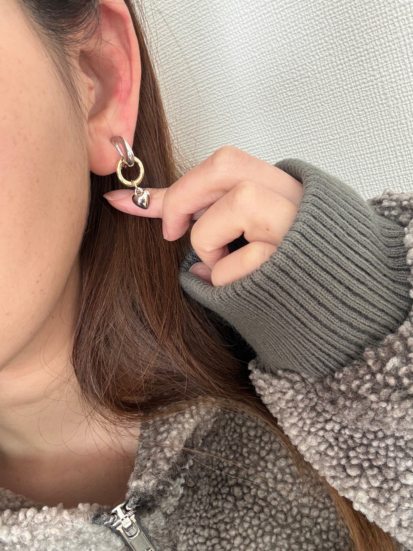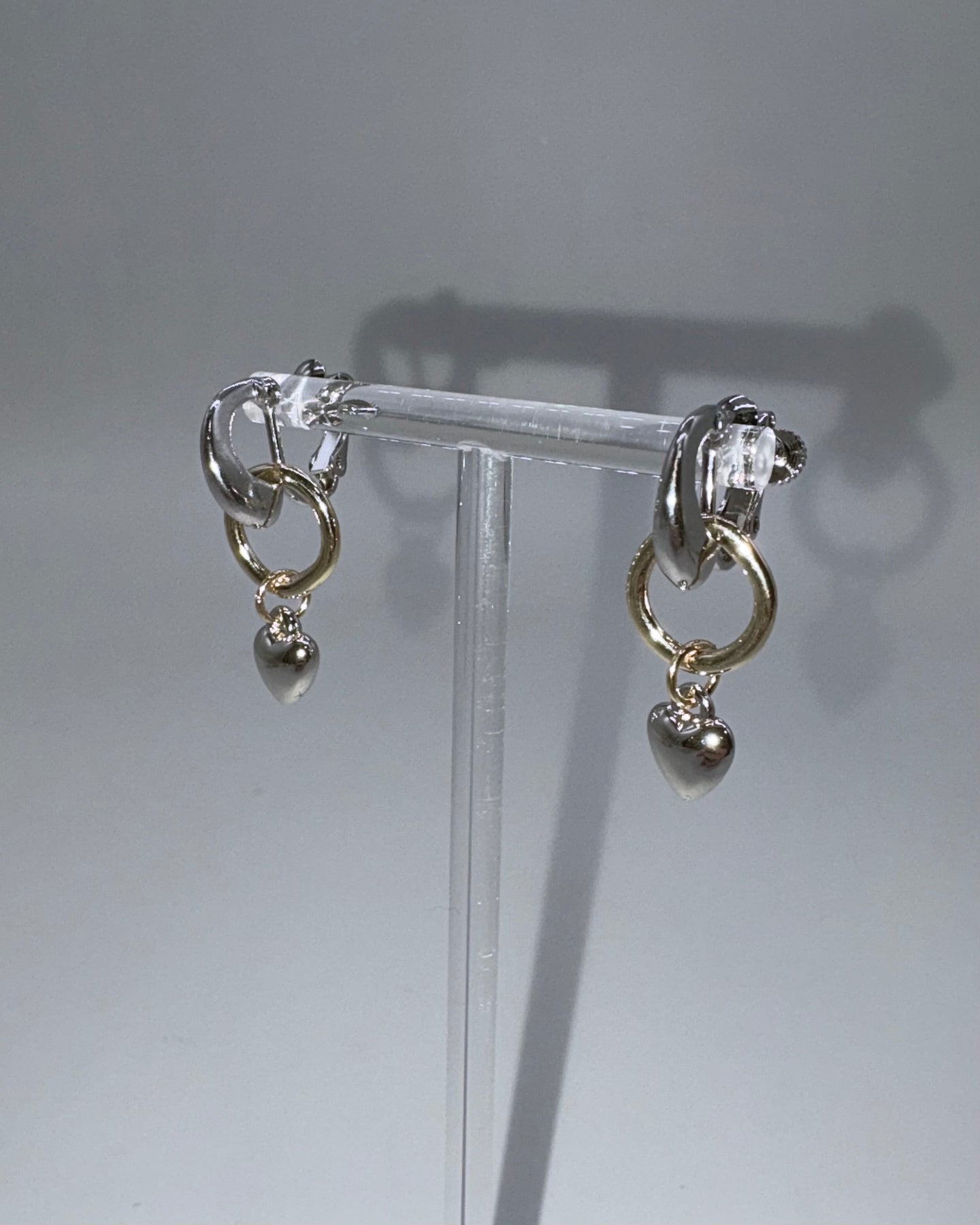 ゴールド、シルバーMIXのハートモチーフイヤリング