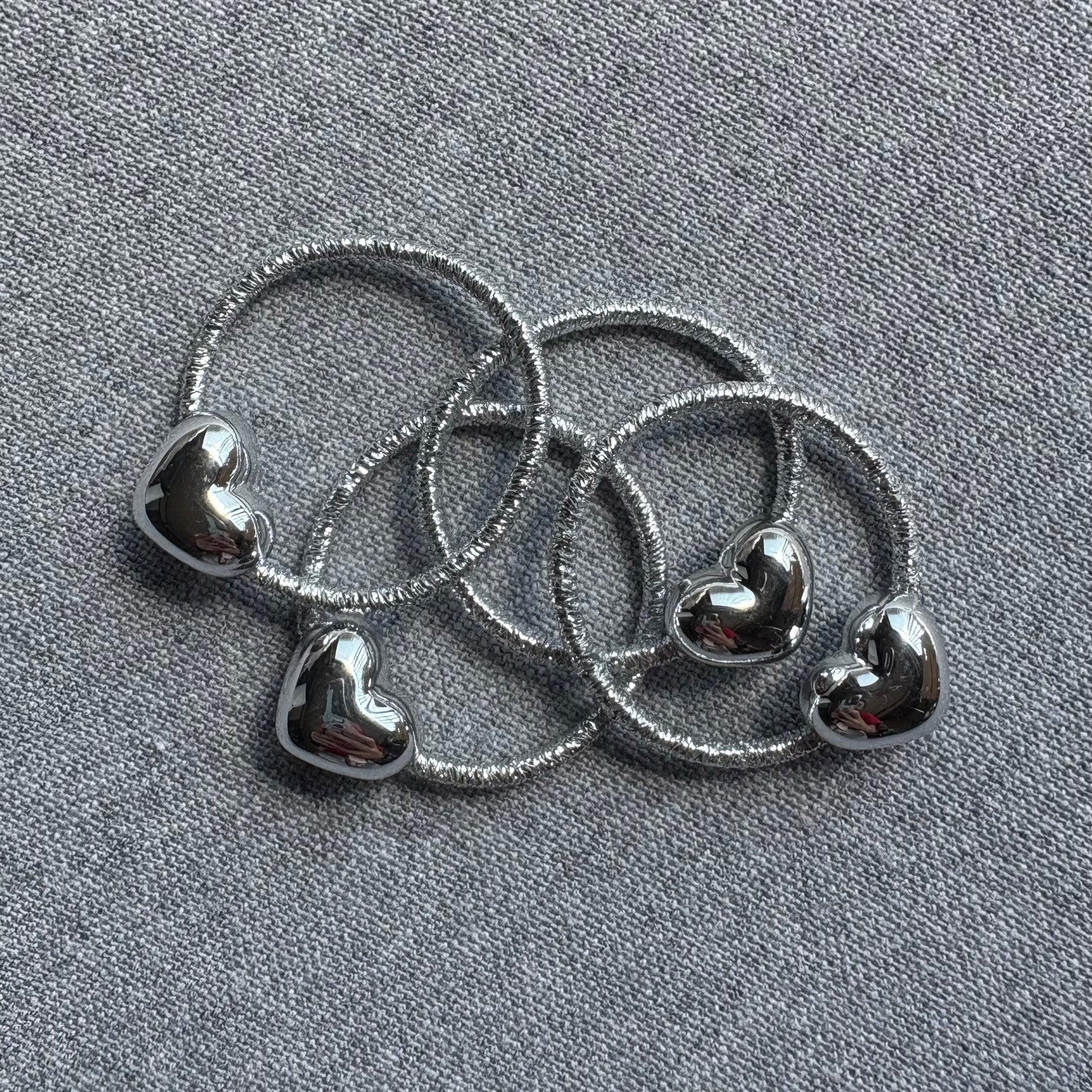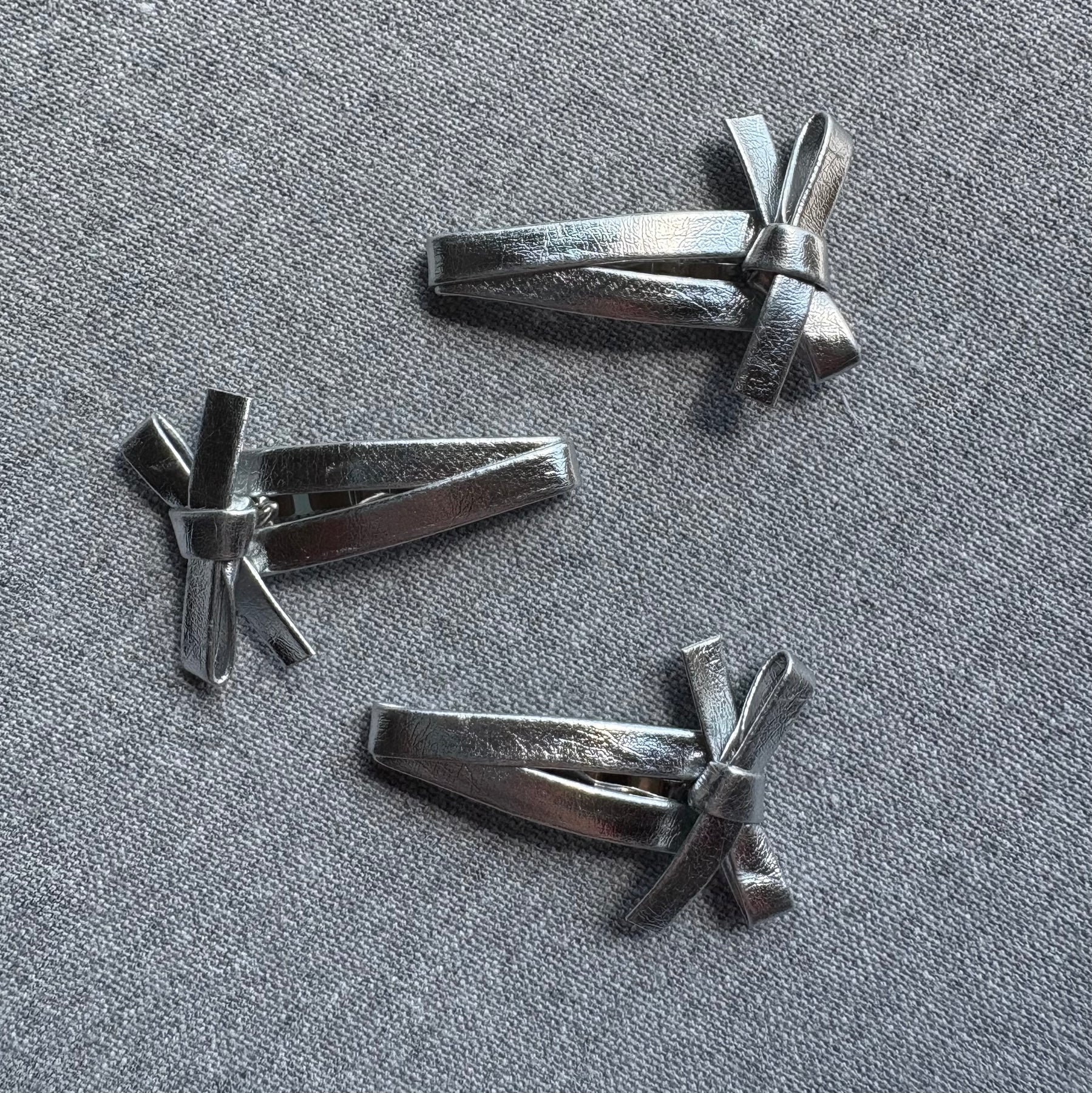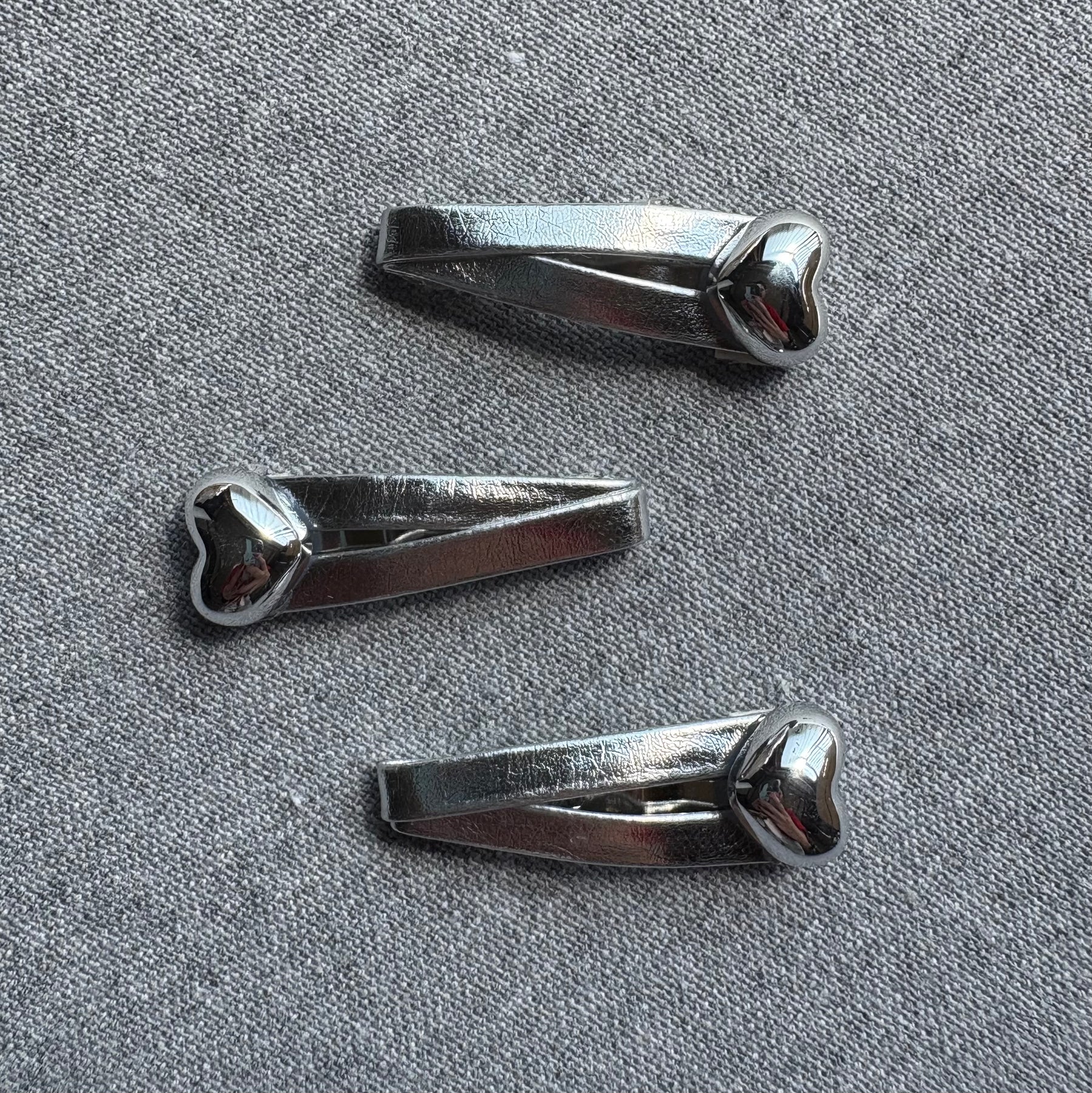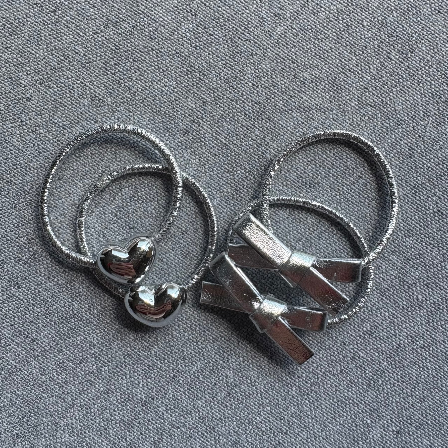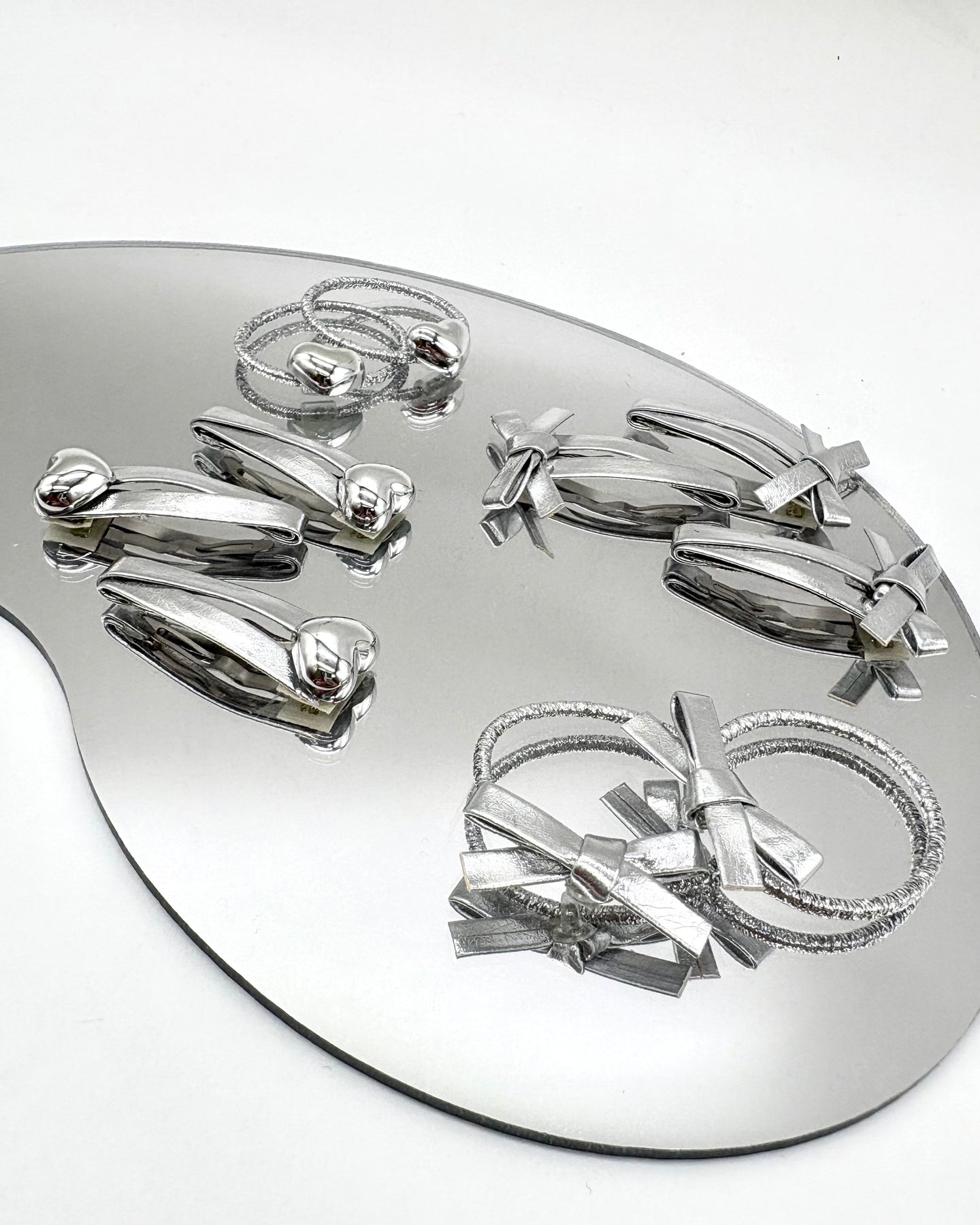 シルバーのハートとリボンがかわいいスリーピンとミニヘアゴム