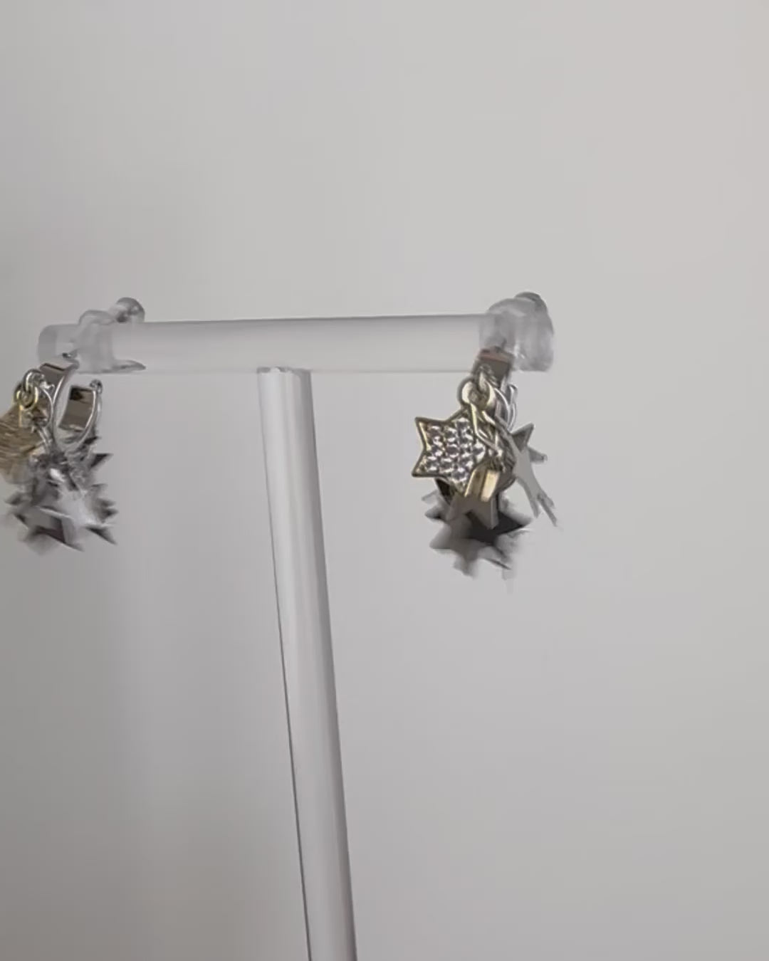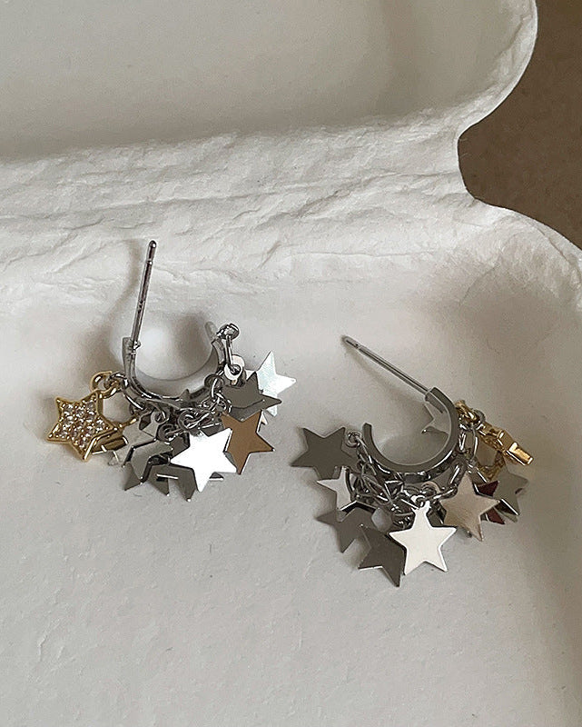 フラットなスタープレートが何枚も重なったデザインのピアス