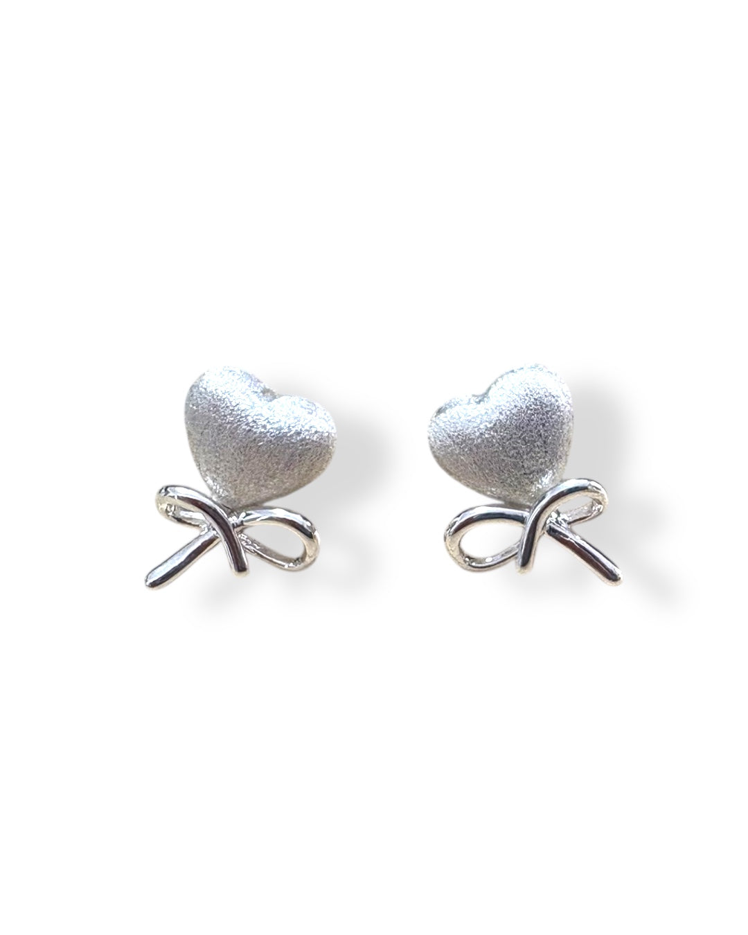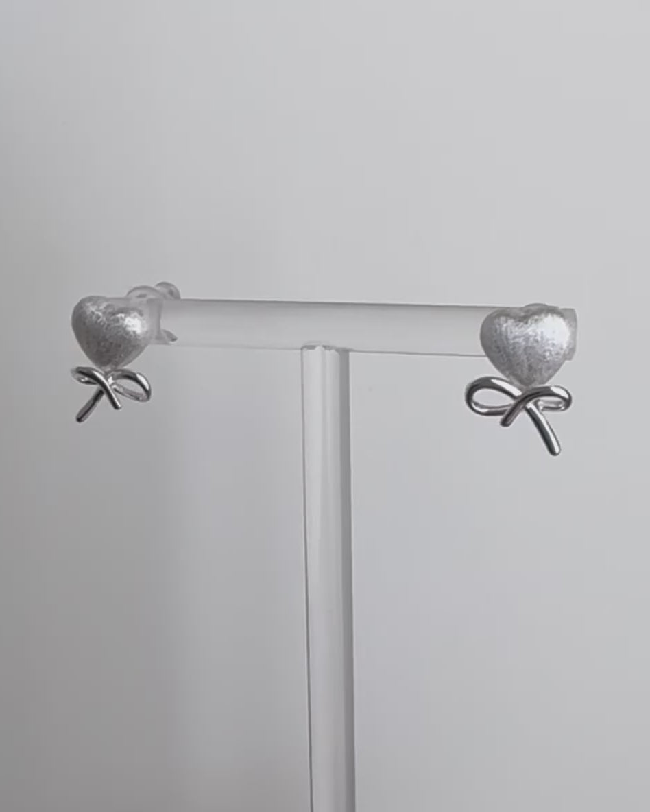 光沢のあるハートとリボンのモチーフがかわいいピアス