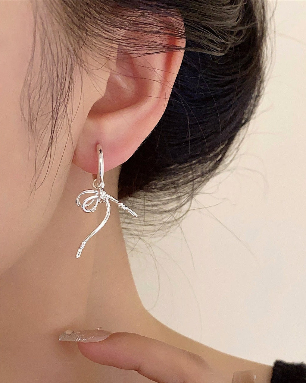 リボンモチーフのフープピアスです