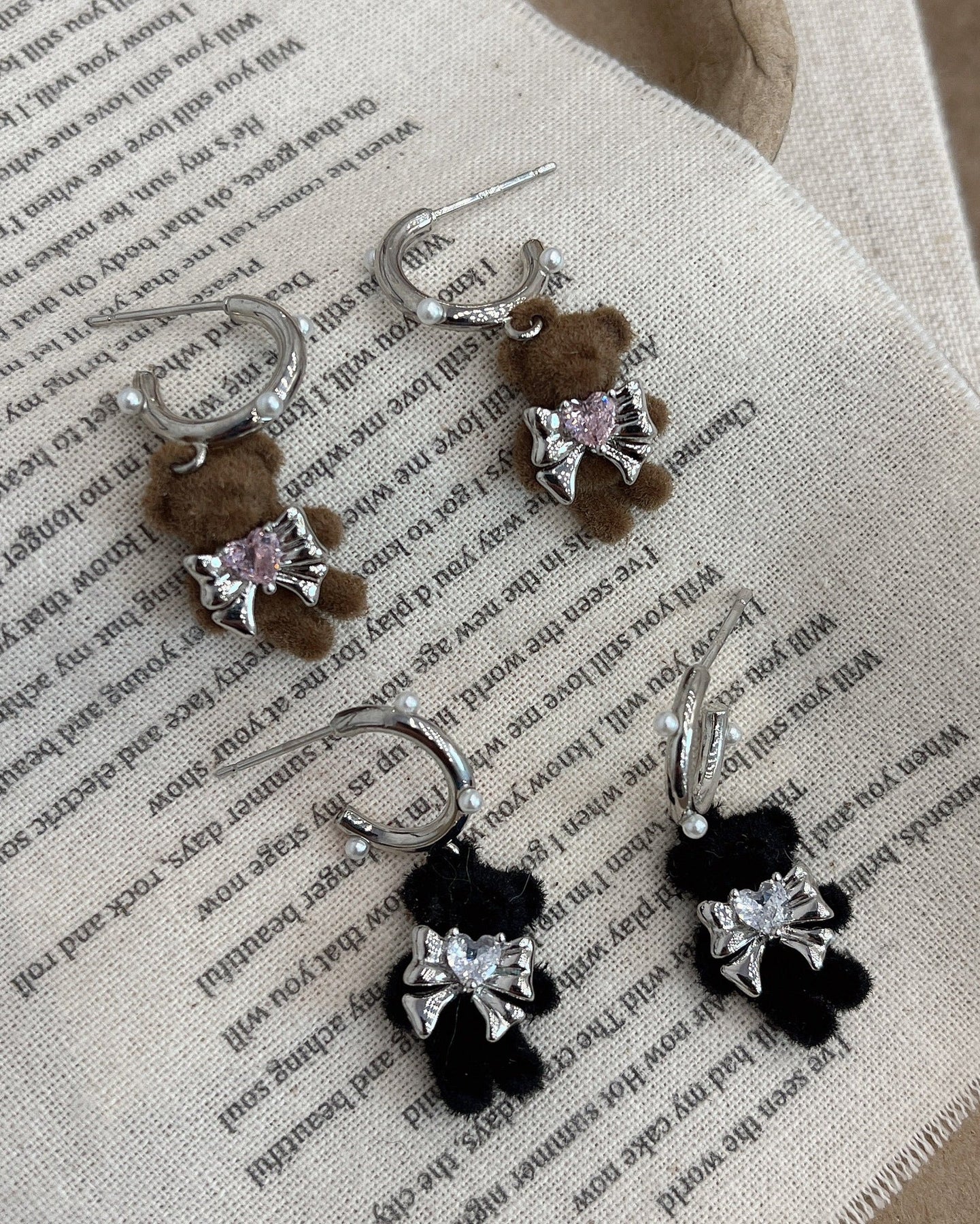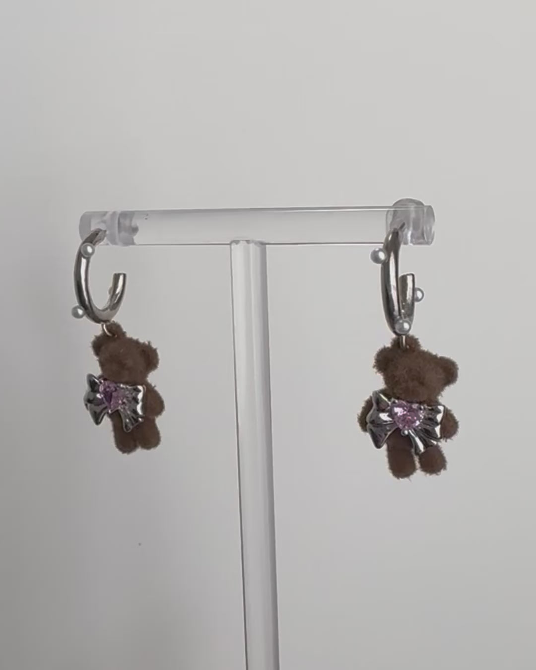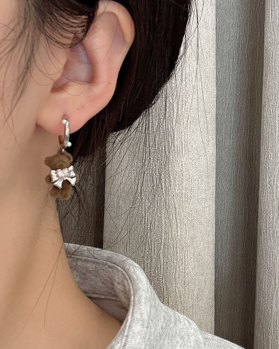 愛らしいくまちゃんが耳元で揺れてコーディネートのワンポイントに