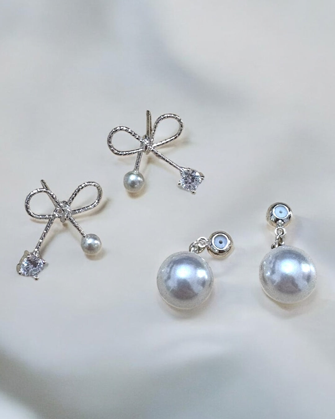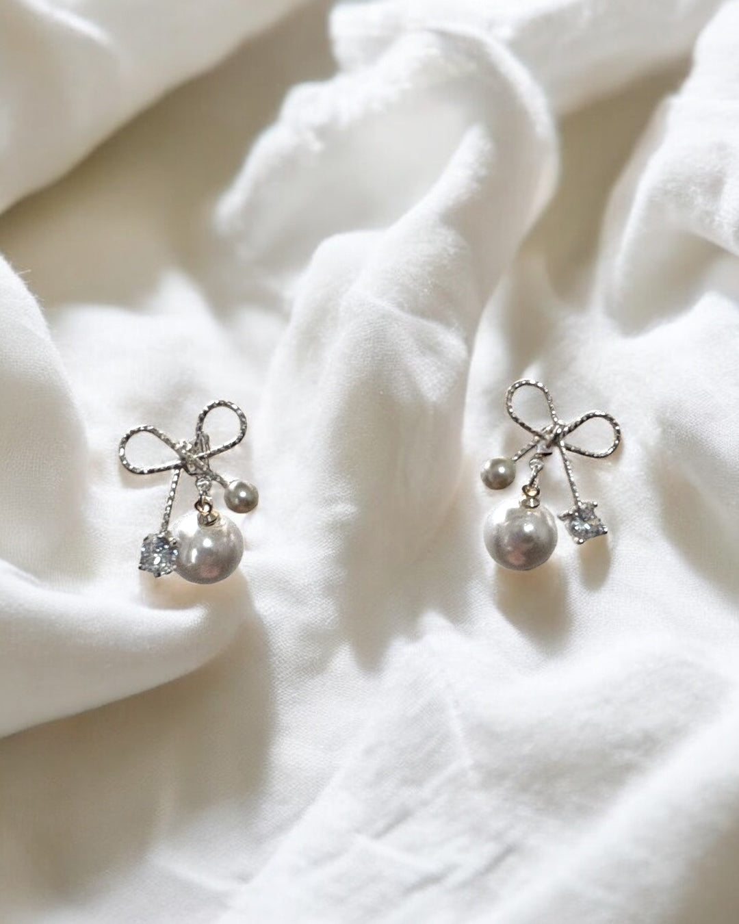 細身のラインが上品なリボンとパールがかわいいピアスです