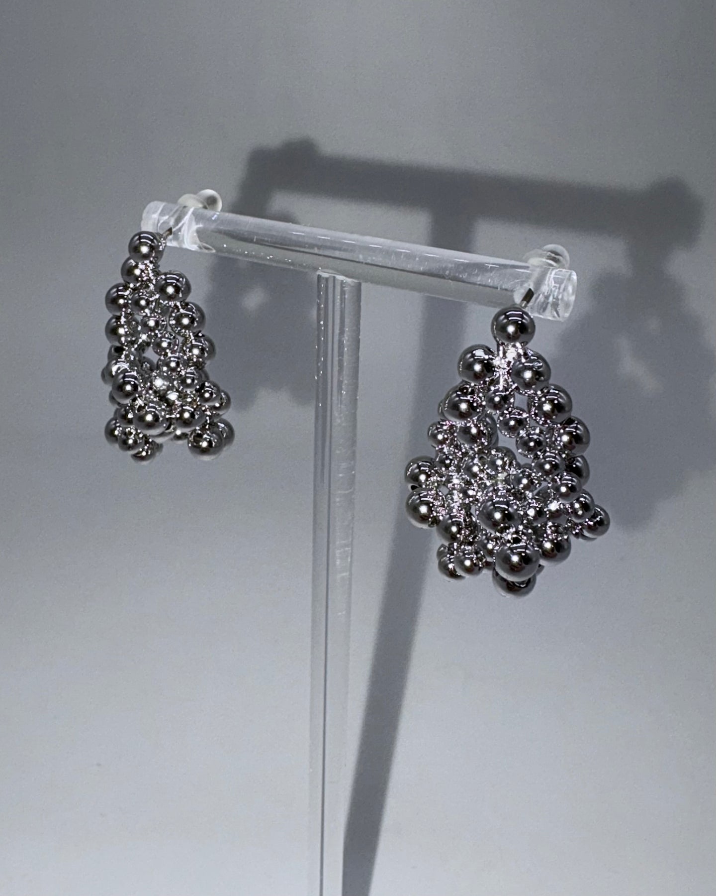 サイズの異なったつぶつぶが個性的なデザインでかわいいピアスです