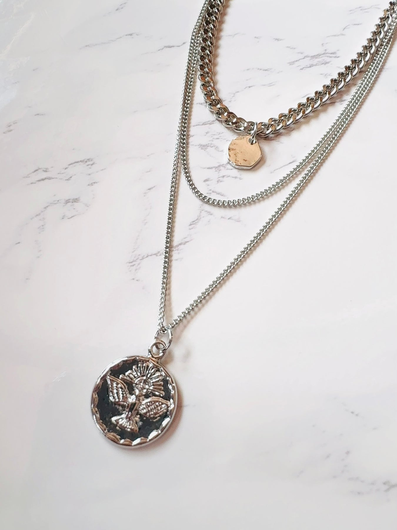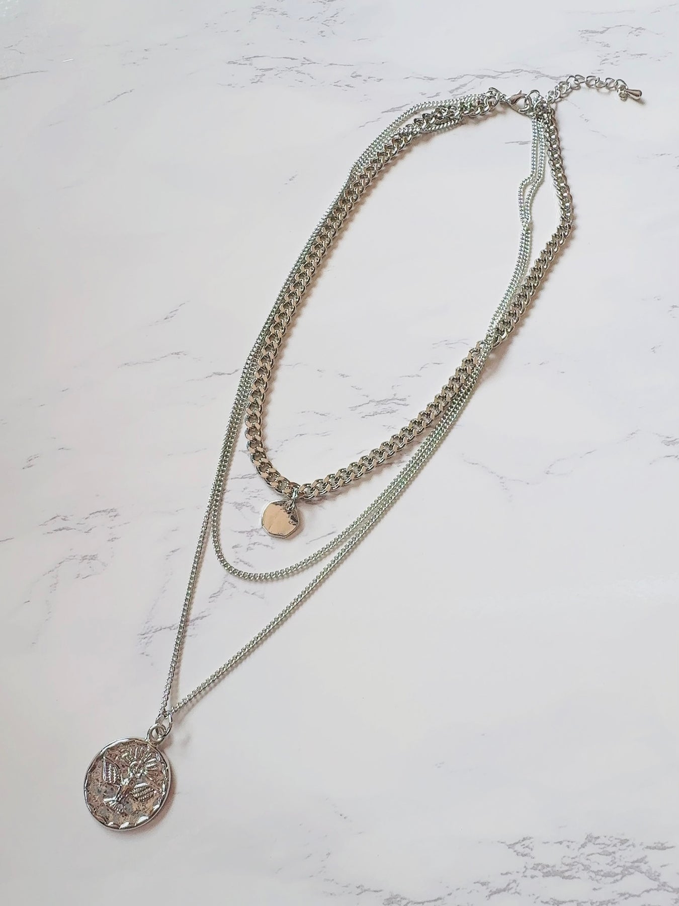 太さの違うチェーン3連ネックレス