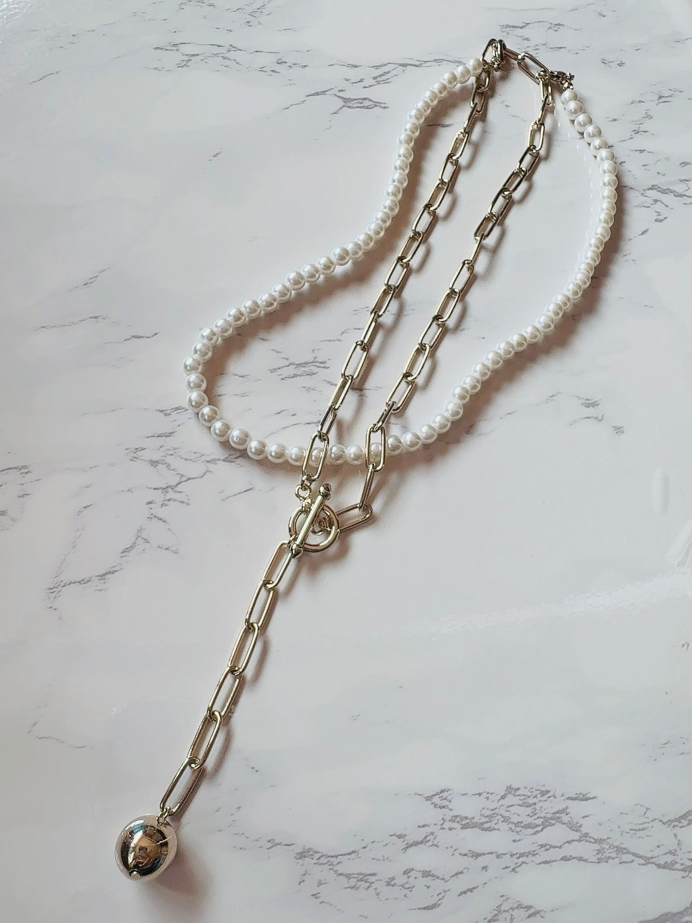 サイズ・・・チェーン長さ約38cm、パールチェーン長さ約36㎝